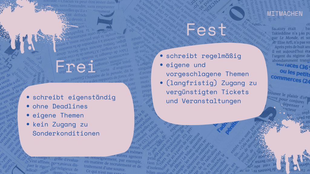 UNGEFRAGT ist ein Netzwerk für junge Stimmen im Kulturjournalismus. Wir schaffen Raum für neue Perspektiven, fördern Autor//innen und Redakteur//innen und verbinden kritische Texte mit frischen Formaten – jenseits des etablierten Feuilletons. Kultur verstehen wir als Dialog, an dem alle teilhaben können.